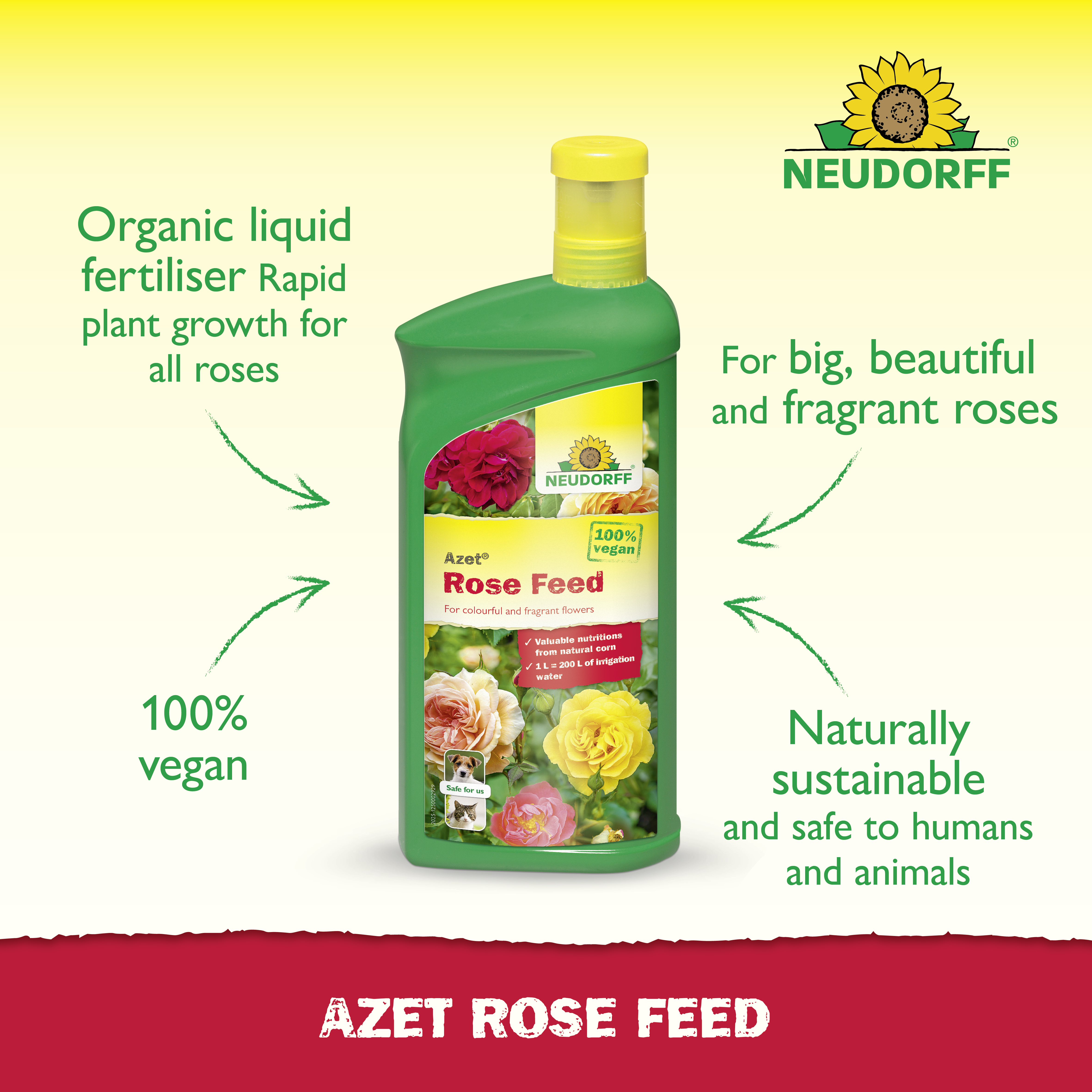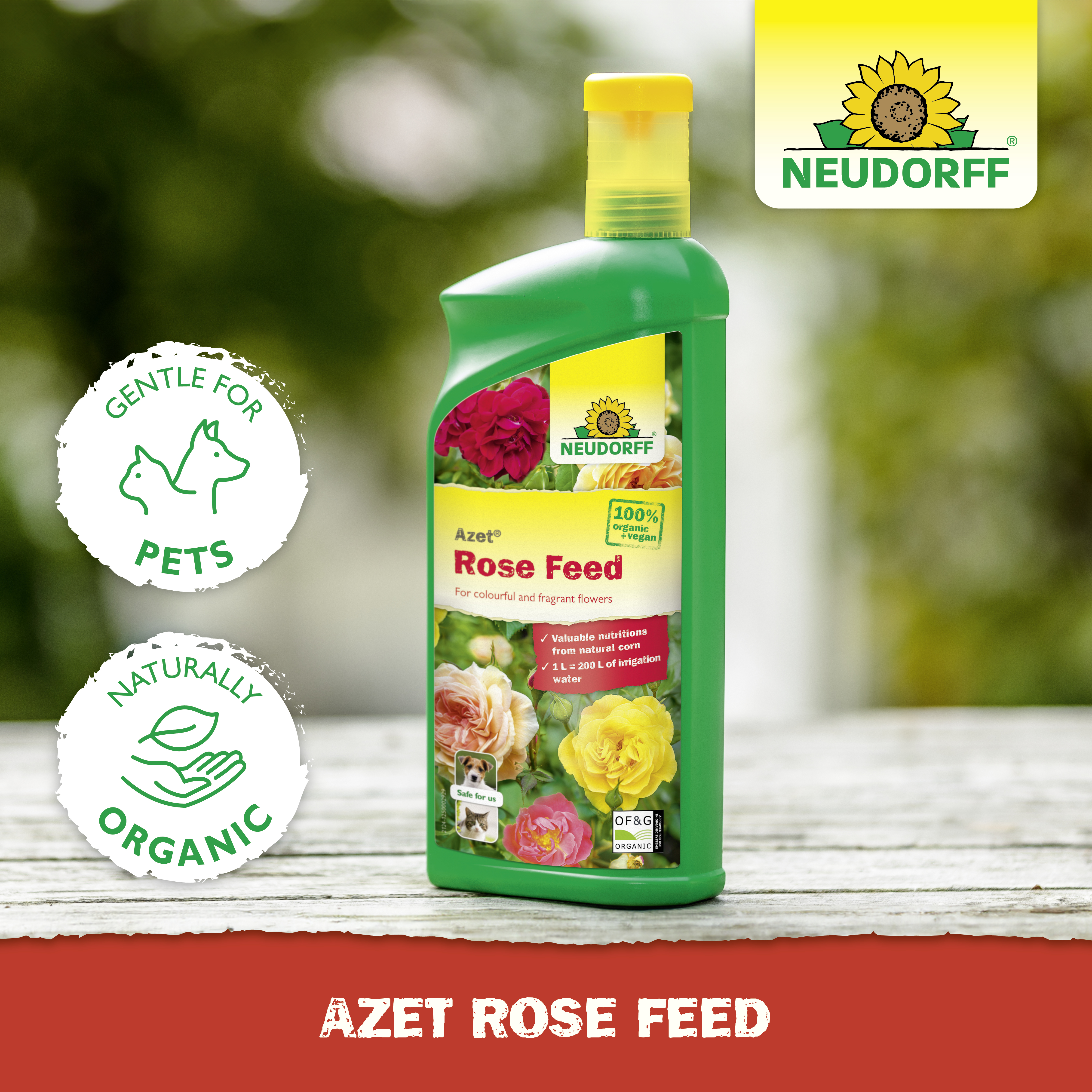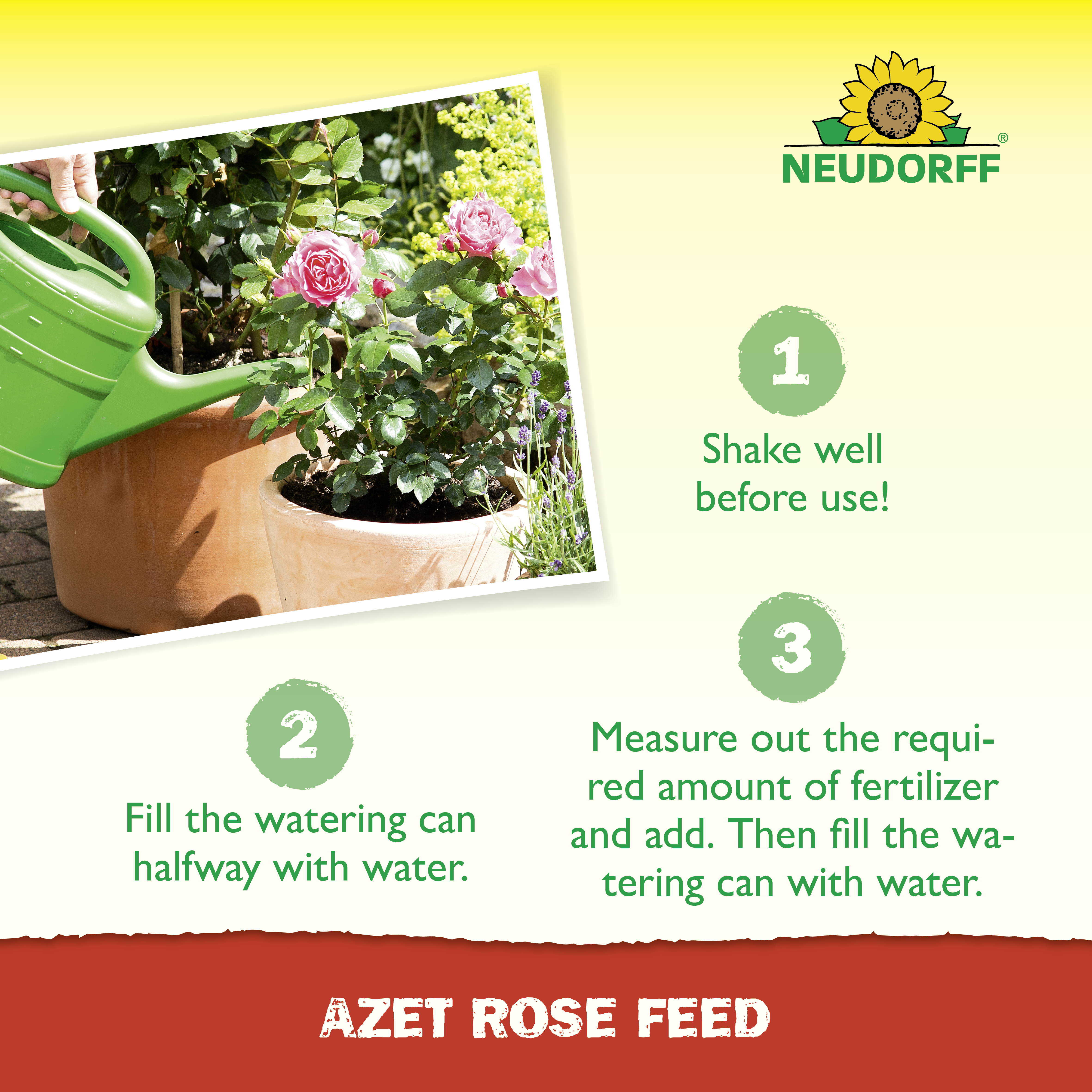 Organic liquid fertiliser made from vegetable raw materials for the effective nourishment of all rose varieties. Suitable for all ornamental plants indoors, on the balcony and in the garden (except for hydroponics). Safe to humans and animals. The composition of organic substances ensures strong and healthy roots. Water and nutrients are absorbed better and faster. This leads to particularly impressive flowers, accelerated plant growth and increased resistance of your roses.